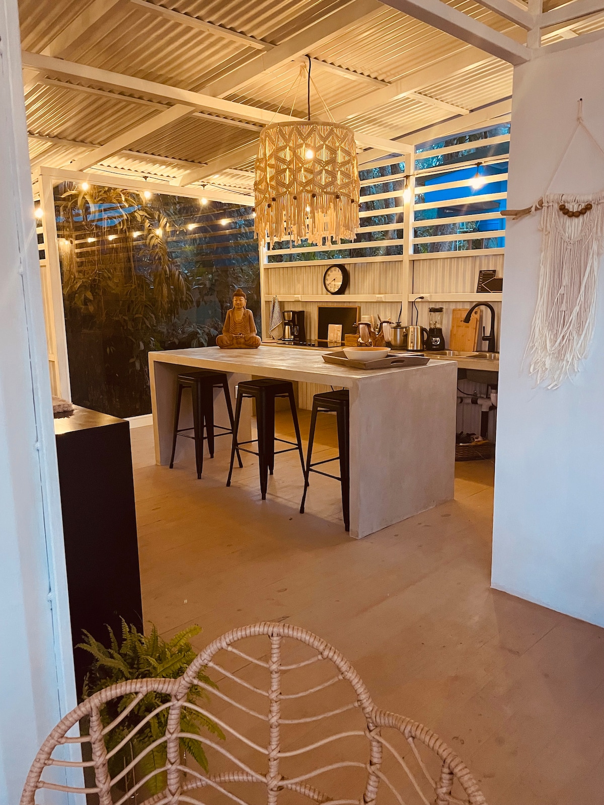 Wake up to sun-dappled mornings on your private patio or take a refreshing dip in the shared pool, surrounded by lush greenery. Villas de la Luz is a unique and thoughtfully designed three-level villa in the heart of Puerto Viejo. With a contemporary living space that spans three levels. The main floor is a harmonious blend of comfort and style open-concept living area that frame the lush garden and wildlife. 🌴