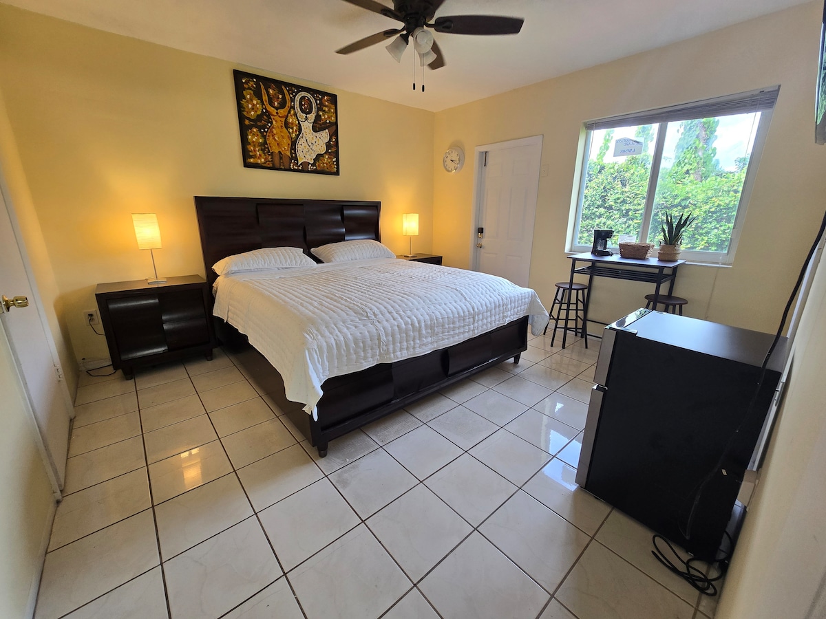 Relaxing, private, peaceful and centrally-located studio. You do not share your space with anyone. Walking distance to restaurants, supermarket, bus stop, Gym and Florida International University. Conveniently close to Miami Airport, Kendall Regional Hospital, Dolphin Mall, TopGolf, Everglades Airboat Expeditions, City Place Doral with Fresh Market, shops, Movie Theaters, Comedy Club, live music and more. Eleven miles from Bayside and Wynwood Walls. The beach? A short 15-mile drive!