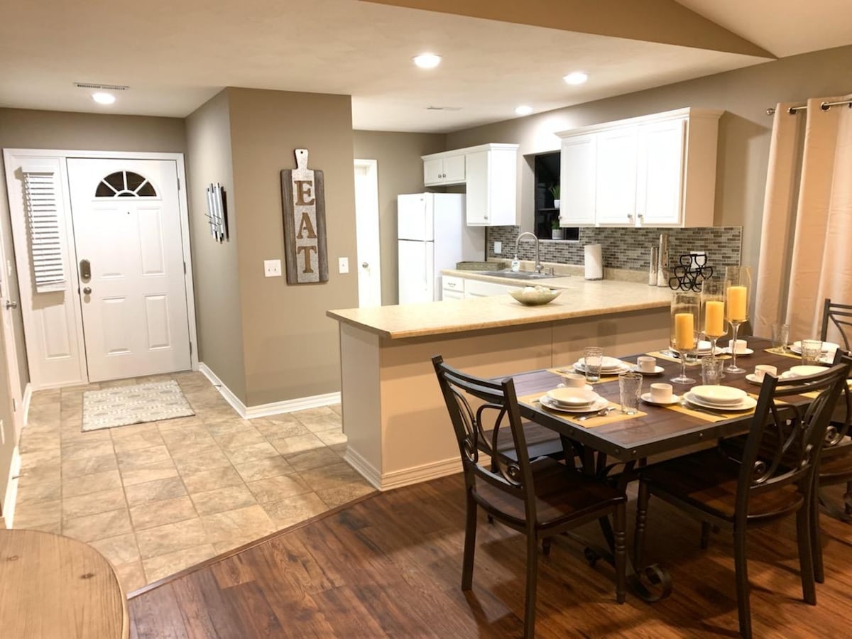 🛑 Tressa says: "Stop Looking and Book It!" Your 5-star Branson escape! NO stairs. 💛Brittany says: "This was the first time that we have stayed at an Air B&B and they made us feel right at home. We will be staying here again. 10,000,000,000/10" Amenities: • Coffee bar • Luxe king beds • 4 Smart Roku TVs • Fast WiFi • Arcade game Location Perfection! 🌿You get a spotless sanctuary with the perfect split: peace and quiet, yet only 12 minutes to Silver Dollar City and 8 minutes to the Strip.