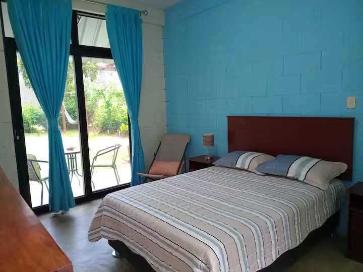 ¡Descubre la magia de la selva en nuestro Glamping! Diseñado para los amantes de la naturaleza, aventura y bienestar, con vistas panorámicas de la montaña. Relájate en una cama queen y disfruta de la terraza, hamaca aerea, el baño completo con ducha caliente, luz solar, cargador para celulares. Tiene wifi rapido de 6 am a 11 pm. La piscina y la cocina son de uso comun y en el comedor hay conexion de 220 volteos.