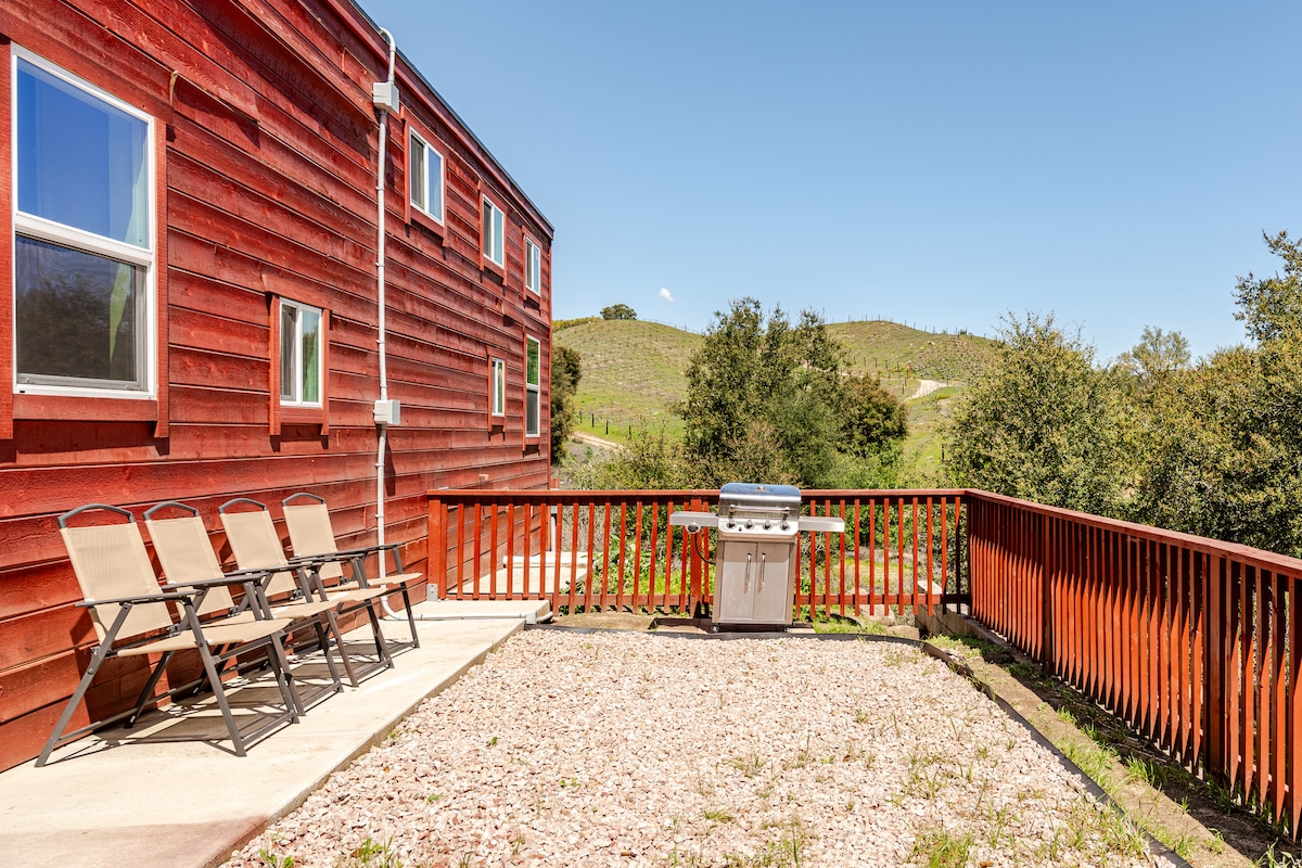 Welcome to Red Cabin Ranch! Our cozy retreat provides natures serenity nestled in a 300 year old oak grove for the ultimate get-away-from-it-all experience in the true heart of wine country. We are a 3 minute drive to De Portola Wine Trail near Cougar and Masia de la Vinya and just steps to Estate Vinyard 2156 with exclusive tours available with its award winning vintner, upon request. Miles of walking & bike trails await or enjoy a leisurely swing in the shade & a friendly game of horseshoes.