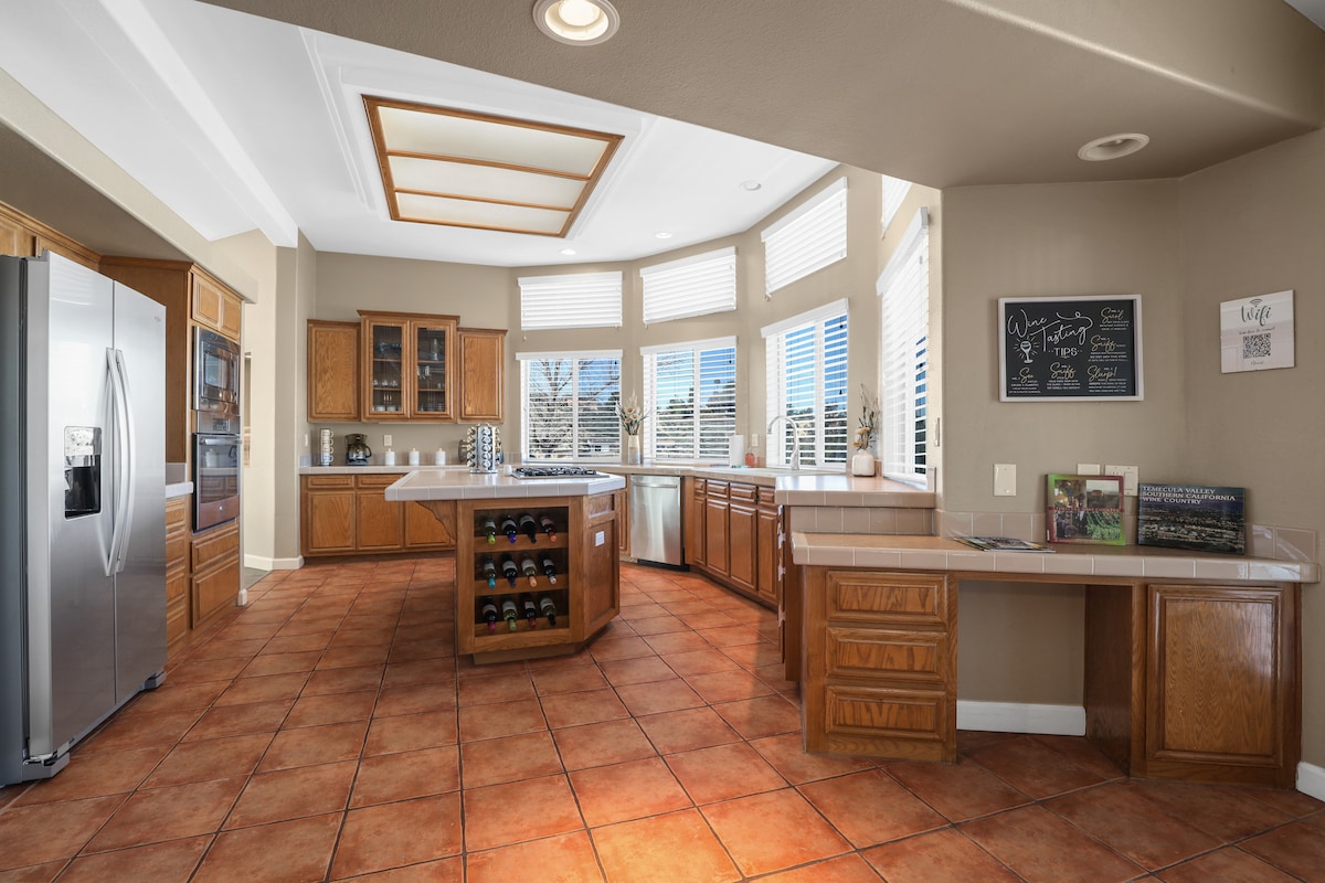 Escape to our Wine Country retreat featuring vineyard views, 2 patios, fast Wi‑Fi, A/C, and tons of free parking for your group! Relax in the yard & play games, BBQ on the grill, or cook meals in a fully equipped kitchen. The house is located minutes from great wineries, tasting rooms, hiking trails, & Old Town Temecula! Our home is clean, comfy, & stocked with everything you need for a memorable wine-country getaway. It is perfect for couples, groups, or work retreats. Book your stay today!