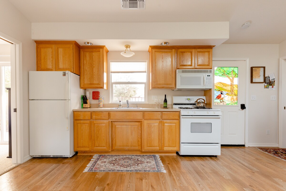 The Farm House at Hollyhock Vineyard is a 2 bed/2 bath home with a beautiful kitchen. The house is surrounded by farm life and vineyard views. Please note: from June 2025-June 2026, our vineyard has been ripped out and we are in the process of replanting. While the view might look a little different, we’re still surrounded by our neighbor’s stunning vineyards. Guests are invited to enjoy a free tasting of our wines at Midpoint’s tasting room at the Bottle Shop in downtown Paso.