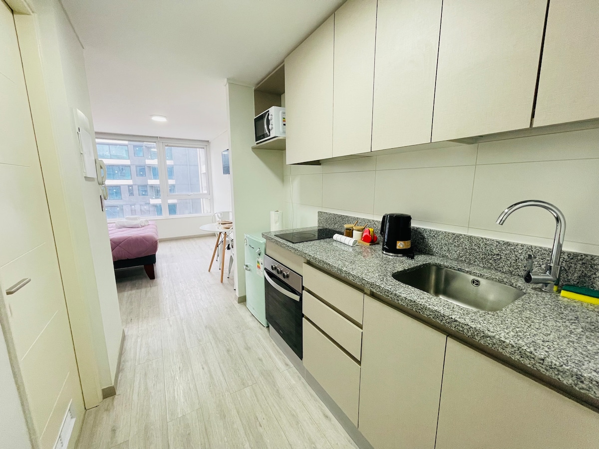 Enjoy a comfortable and carefree stay in this fully equipped studio, designed for relaxing and taking advantage of the city. Bright, with a private balcony ideal for relaxing, excellent natural light and carefully prepared spaces. It has parking included, stable wifi and everything you need for short or long stays. Perfect for business trips or getaways, with easy access to services, shopping, and key points in the city.