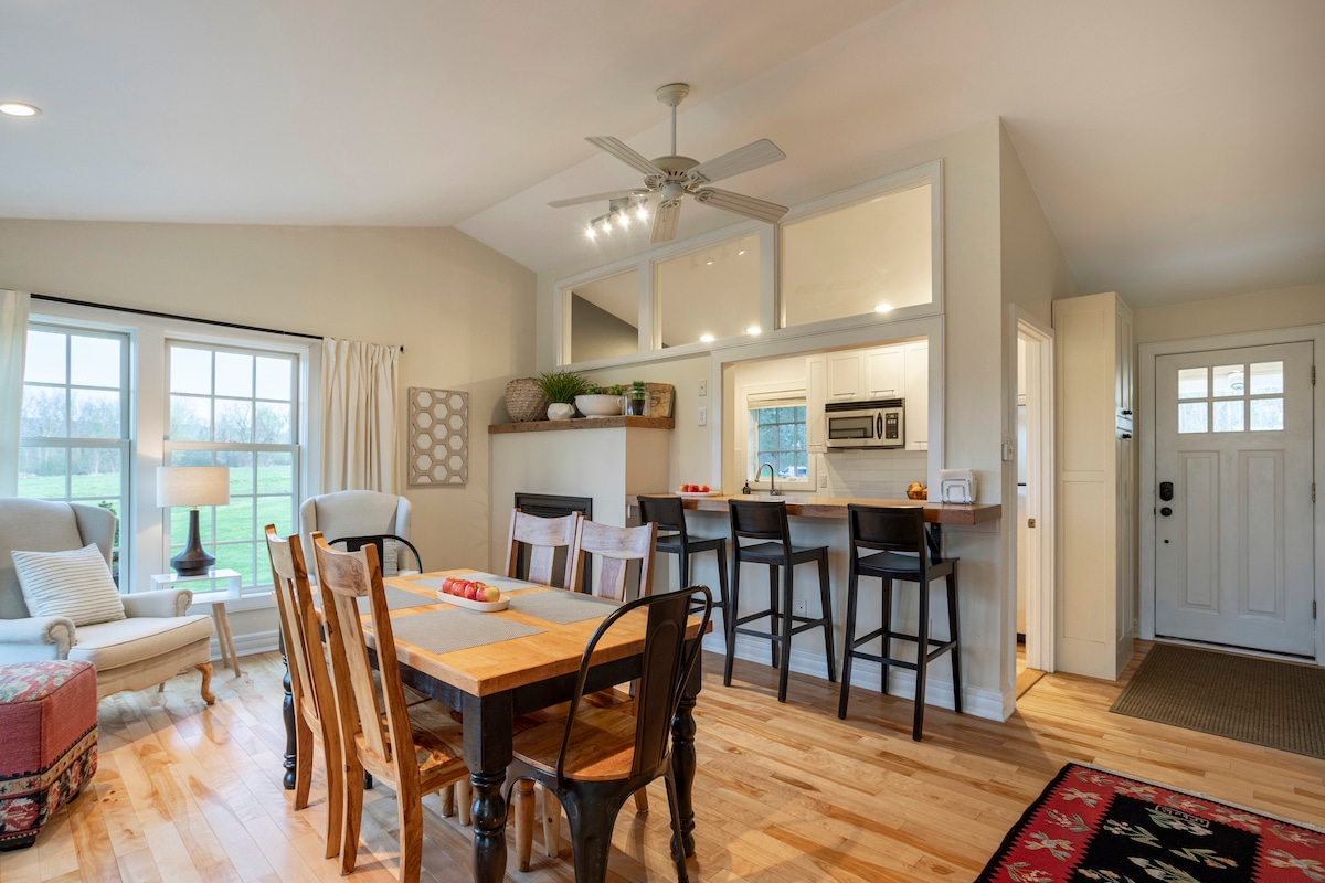 Welcome to your cozy cottage in the bucolic Hudson Valley. Only 90 mi. north of NYC. We welcome small dogs, under 25 lbs. with prior host approval. Sorry, NO CATS. Enjoy biking, hiking, skiing, local culture or just relaxing. 1 mile outside a charming village in farm and horse country, your cottage has a full kitchen/LR, 2 BRS (1 queen, 1 full), bathrm, washer/dryer, deck, patio & yard. Close to colleges, dining & activities. We hope that you will love this corner of the world as much as we do.