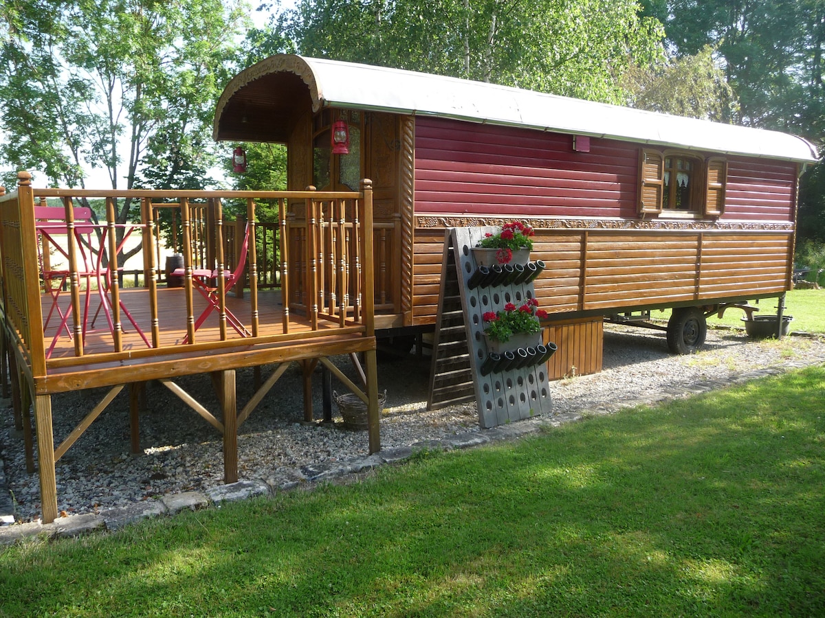 New: We have installed a pellet stove for winter evenings in the cottage and the trailer has an electric heater. A new terrace for your meals in the hut. In a quiet little village in the Ardennes, enjoy the sounds of nature when you stay in this unique place. Close to Lake Bairon and the greenway. You have a bathroom area and kitchen independent of the trailer. Breakfast for 12 euros, savory or sweet, to be ordered at the time of booking.