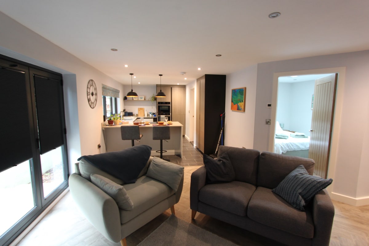 Modern accomadation near Bolton Abbey.Walkers, cyclists and steam train enthusiasts come and enjoy a great day out with countryside walks steam trains and cycle routes followed by a lovely meal at 1 of 2 nearby pubs.Close to Tithe Barn and Barden Moor..All this is within walking distance to Skipton (Gateway to the Dales).Home of Skipton Castle,regular markets and canal boat trips.Numerous pubs restaurants and cafes.Seperate Annexe with own key.Also secure storage for bikes.A warm welcome awaits.