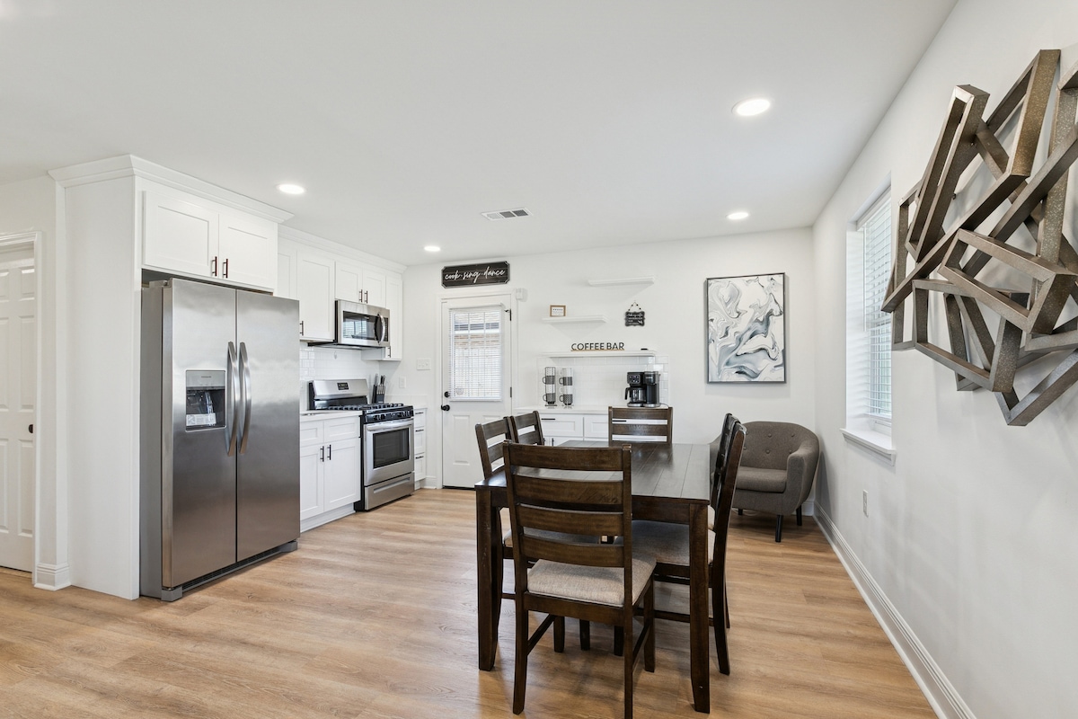 Just renovated, clean and bright, with a full bathroom for each bedroom! Enjoy the big back yard with automatic light system at night for relaxing. Triple monitor workstation with keyboard and mouse if you need to boot up on the road--just bring your laptop and hub. 65" 4k TV for catching up on Netflix with a Super Nintendo! Offstreet parking. Fully equipped kitchen and coffee station for starting your day right. Attentive owner who requires that guests enjoy their time in New Orleans :)