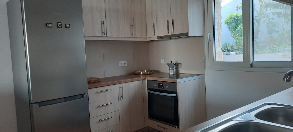 Right on the sea! breathtaking view! Well furnished and decorated 2 bedroom home. Fully enclosed private garden overlooking the sea. «Private » little beach, rocks for climbing and even a cave! In a quiet area just outside the town. (5min walk)