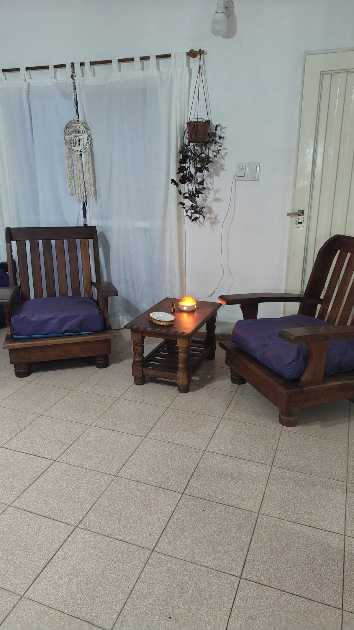 House at the foot of the mountains of San Luis. Ideal for relaxing! With unforgettable sunsets. Spectacular Quincho with 75’TV and a huge grill to enjoy. A double room with two-seater sommier and a living room dining room with sofa bed and one square bed. Equipped with A/C in every room. Handy car park for two cars. Private security 24hs . It has laundry and washing machine. Wifi.
