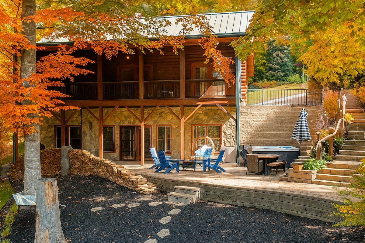 Waterfront Log Cabin w/Hot Tub, Kayaks, Firepit