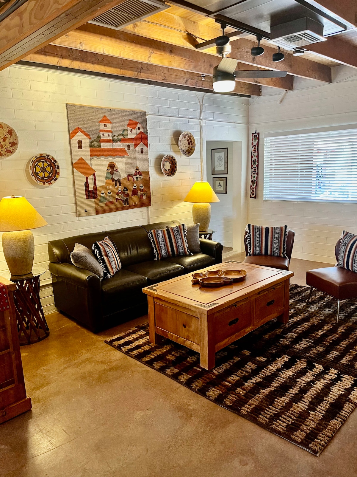 Come stay at the Ocotillo Casita at Cat Mountain! Located feet from Tucson Mountain Park and inside Cat Mountain Station, this location is perfect for nature lovers and style hunters alike. The building was built around a John Wayne museum in the 1950's, but converted into three 1,200 sq. ft casitas in 2023. The unique décor in the space is locally sourced, creating a vintage ranch vibe surrounded by Ocotillo. It is perfect for travelers looking to relax in the Sonoran Desert.