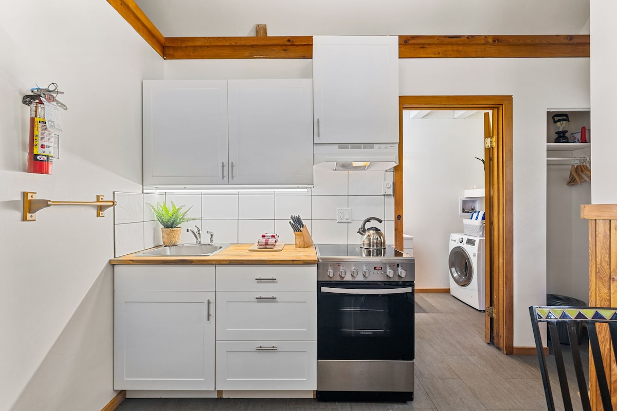 Experience the best of both worlds in this modern, spacious cabin that combines sleek design with natural beauty. This brand-new cabin was thoughtfully crafted using natural materials, seamlessly integrating with its old-growth forest surroundings 1100 square feet 2 king bedrooms + double sofa (sleeps 6) Hot tub Soaker tub and walk-in shower w/ heated floors EV chargers Washer/Dryer Fully equipped kitchen Fireplace
