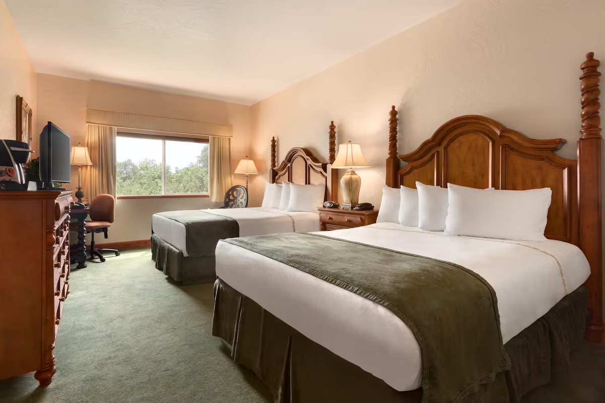 Welcome to the Villas at Zermatt Resort, a Swiss-inspired retreat in Midway, Utah, just minutes from Park City, Deer Valley, and Sundance. Enjoy year-round amenities like indoor/outdoor pools and hot tubs, plus nearby hiking, biking, golfing, skiing, water sports, and winter ice fishing. This redecorated Double Queen Suite sleeps 4 with two queen beds, a private bath with tub/shower, flat-screen TV, blackout curtains, and a work desk. Easy keyless check-in and stocked essentials included!