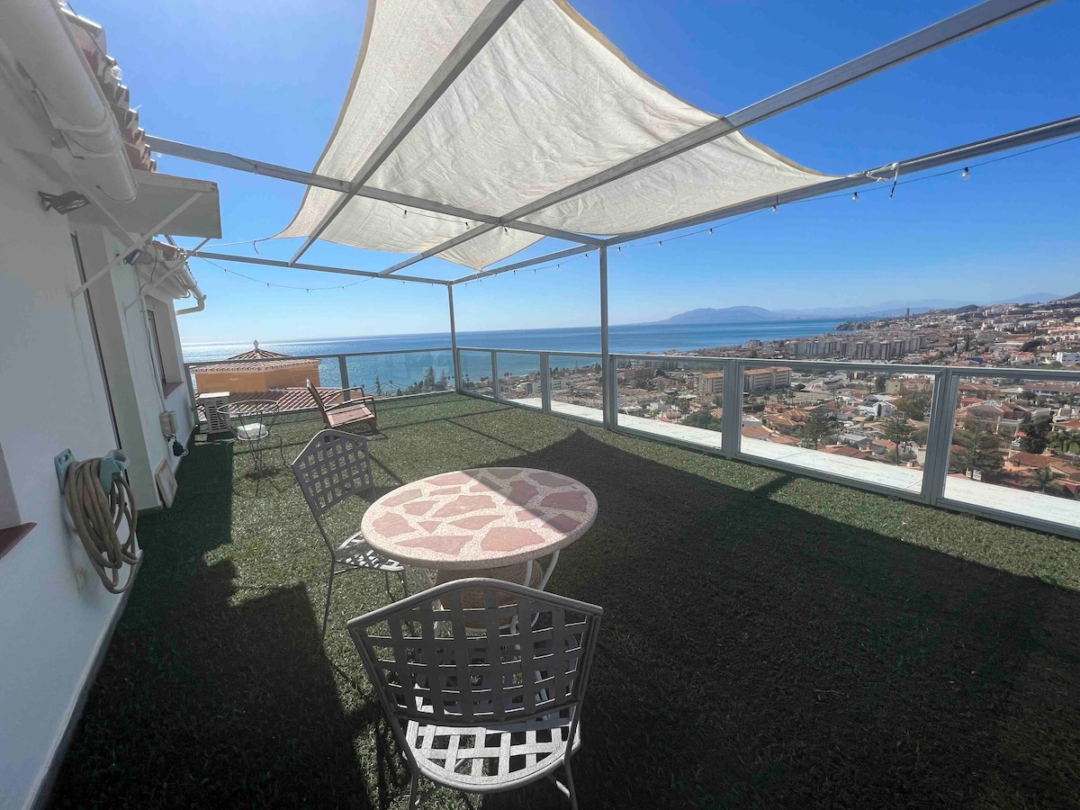 Welcome to Casa Medina, our 60,000 sqm farm, set in the heart of Andalusian nature near the village Moclinjo, only 25 minutes from Málaga! In your Casa you’ll enjoy a sea-view balcony, a patio with natural vine shade, equipped kitchen, A/C and a fireplace — all you need to feel at home. The swimming pool is 400-meter away near the village, and Costa del Sol beach is 11 km away. Within 2-hours you can explore Spain’s beautiful cities Córdoba, Seville, and Granada. Málaga Airport is 35 min drive.