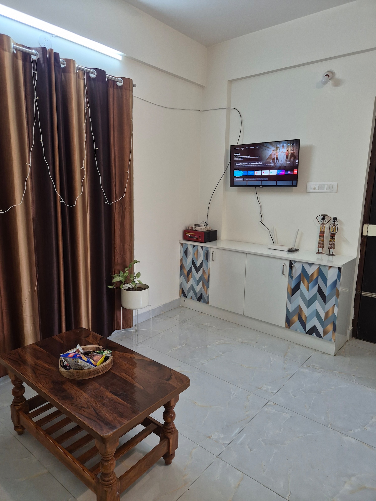 Welcome to your perfect home-away-from-home in the heart of Whitefield! This stylish and fully furnished 1-bedroom, 1-bathroom apartment is ideal for both business travelers , couples and families seeking comfort, convenience, and connectivity. Property Highlights •Wi-Fi Available •Free parking •Fully equipped kitchen •Smart TV in stylish living area •Continuous water & electricity •Dedicated workspace