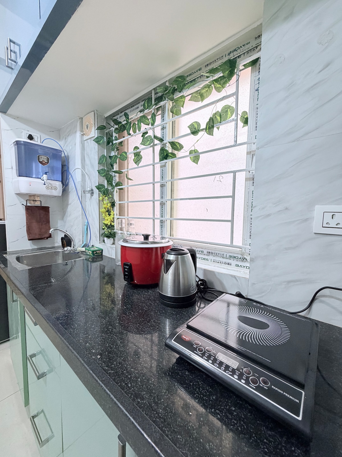 Nestled in the heart of Whitefield, surrounded by lush greenery, our premium 1 BHK apartments are meticulously designed to offer high-quality stay experience and extreme comfort. We have used wakefit 10" memory foam mattresses in bed room and amoeba sofa cum bed in the hall, to offer ultimate sleep quality and back support. We designed our kitchen spaces with modern kitchen utensils - including mini bar set. Other amenities include 100 Mbps WIFI, proximity to the Metro station, and IT hubs.