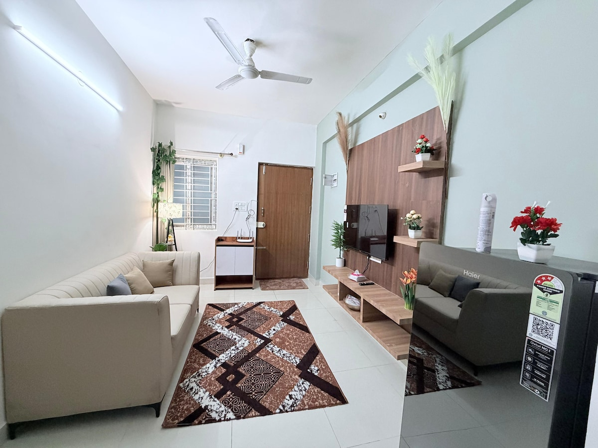 Welcome to your perfect home-away-from-home in the heart of Whitefield! This stylish and fully furnished 1-bedroom, 1-bathroom apartment is ideal for both business travelers ,couples and families seeking comfort, convenience, and connectivity. Book your stay and elevate your Bangalore experience.
