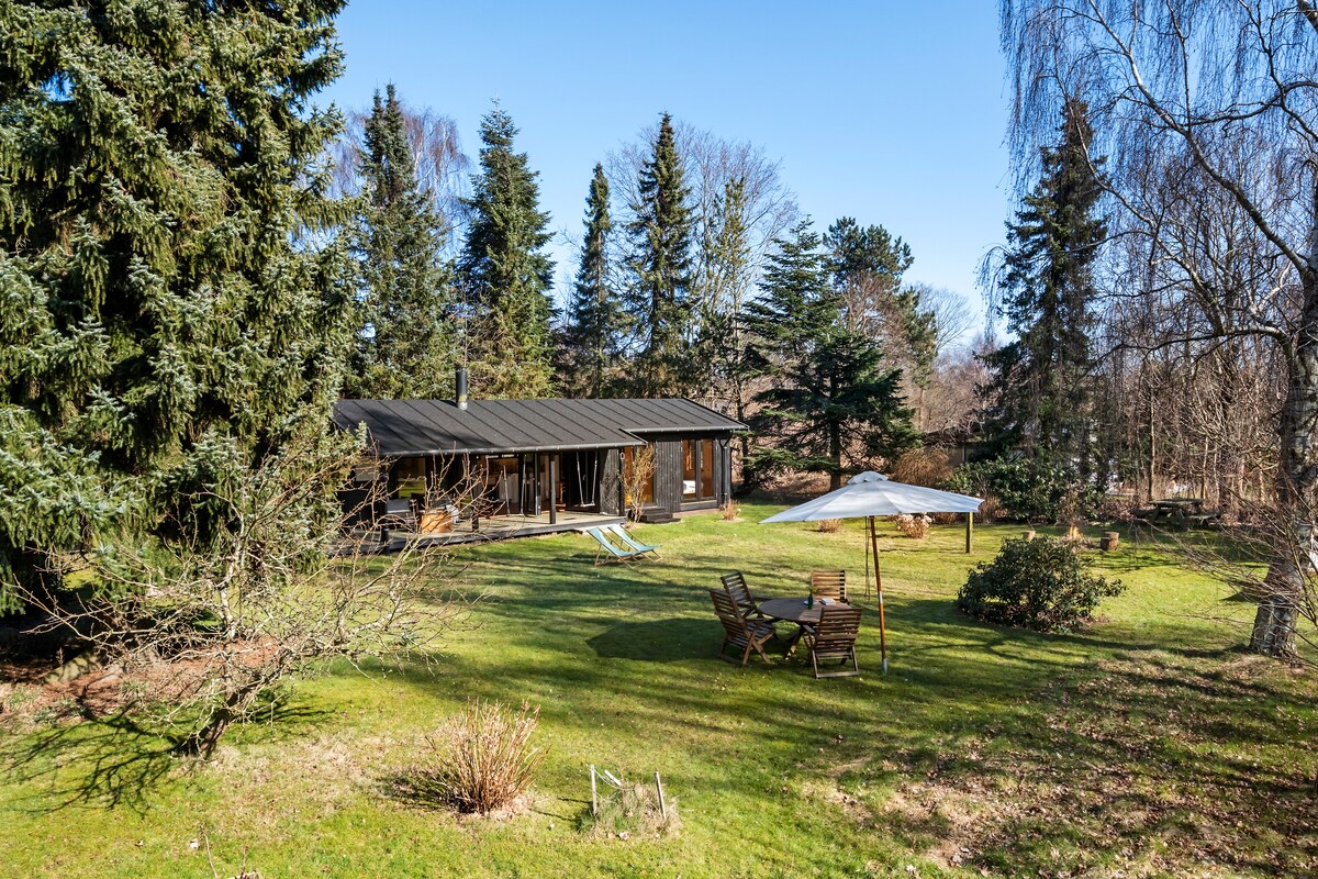 Nice bright and large holiday home of 114 m2 and newly built luxury annex of 42 m2 with private bathroom and outdoor shower. Located on a lush natural plot in a quiet and wooded area in Rågeleje. Ideal for large families or two families/accompanying grandparents who want to enjoy nature from morning to evening in the large garden and who want plenty of space indoors for coziness and presence. 2 km to the lovely beaches through the trails to the famous Heatherhill. New trampoline + Electric car charger in driveway.