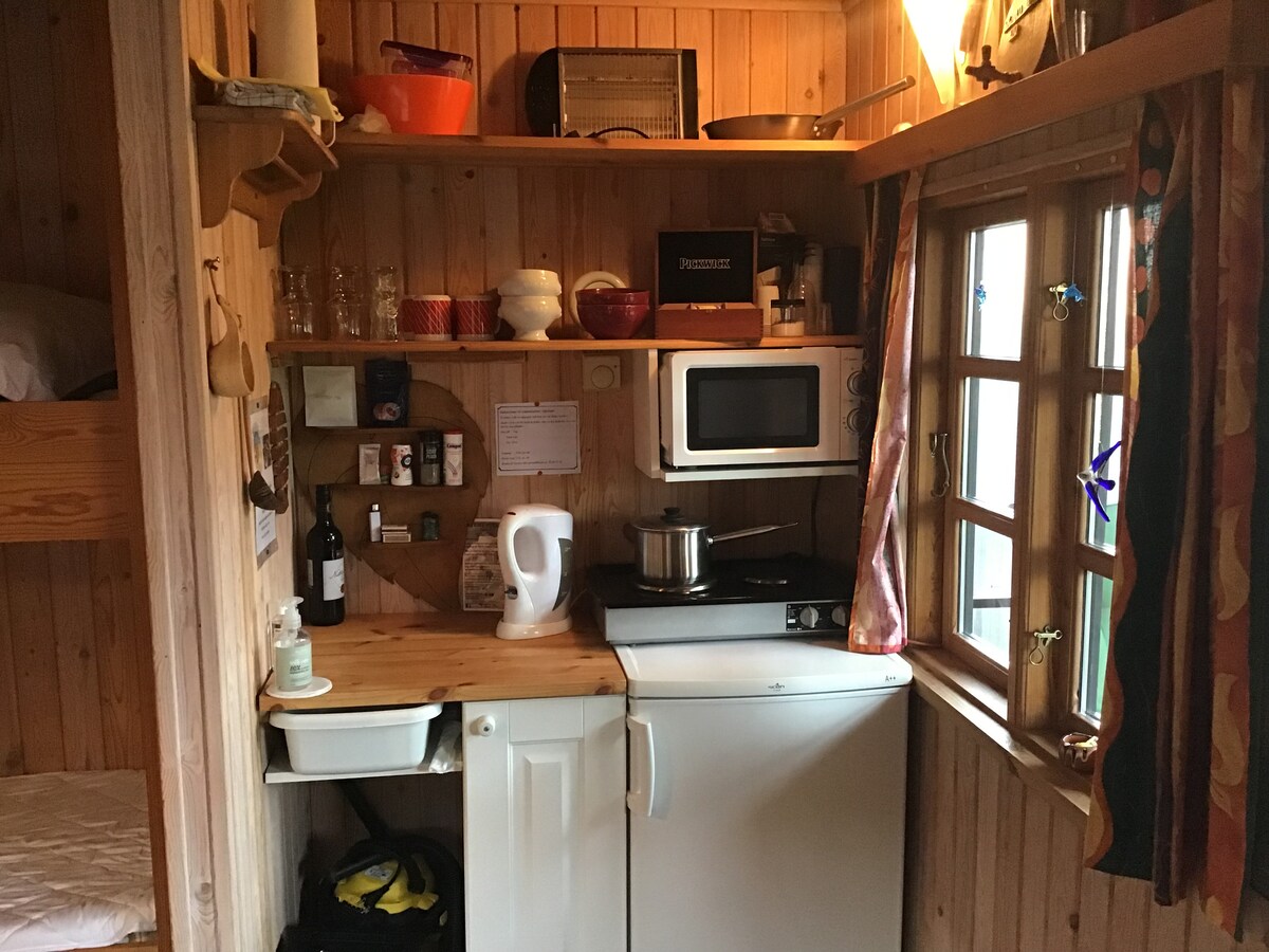 Nice cozy fishing hut of 30 sqm. In the beautiful old harbor town by the Hærvejen. The house is located in the garden by the town's oldest fishing house from 1777 and has its own entrance from the street. The house contains a large living room with 4 bunk beds, a small toilet and bathroom as well as a small kitchen with a fridge, microwave and electric kettle and 2 hobs. A covered terrace with a view of the fjord. Opposite is the Old Inn, which was a customs house in the old days when the salt (the white gold) was sailed here from Læsø by the Cathedral's sailing ship