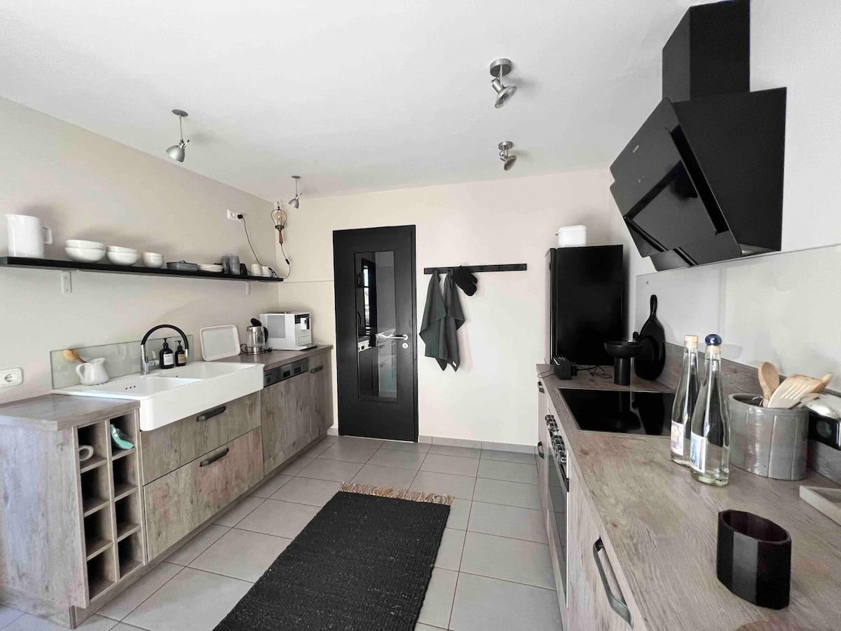 ⸻ Spacious house with about 100 sqm for up to 4 people in Herford. Two bedrooms, kitchen, living-dining room, guest toilet and large bathroom with shower and bathtub. Separate house with private entrance, parking space next to the house. Also ideal for tradespeople or business travelers during the week. Despite the rural setting, supermarkets, bakeries, and cafés can be reached in a few minutes by car or bike. No extra cost for final cleaning. Ideal for getaways and longer stays