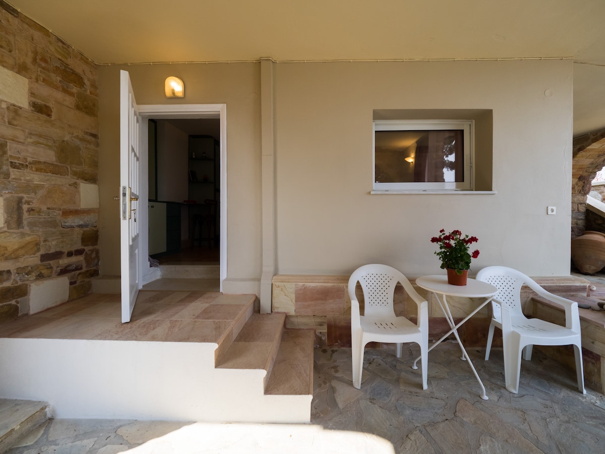 Relax in this calm and elegant place right on the beach. Ideal place for couples or small families, who are looking for a holiday home on the beach. The beach of Karfas is a sandy beach with clean, blue and swallow waters, which makes it ideal for holidays for both adults and kids. It is 15 minutes by car from the city center of Chios and 5 minutes from the airport. Also, the place of Karfas is located in the middle of Chios, which makes it an ideal place for excursions around the island.