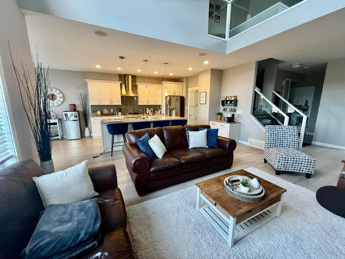 Escape to a peaceful lake getaway just 50 minutes West of Edmonton. Wake up to lake views right from your bed! Relax in the waterfront hot tub, eat outside on the lake front patio or the brand new deck. Enjoy a fun movie night complete with theatre style popcorn machine and 75” Smart TV. Reconnect with loved ones in this family-friendly place. Open living rooms connect to kitchen and dining so everyone can feel included- and enjoy the views from nearly every spot in the home!