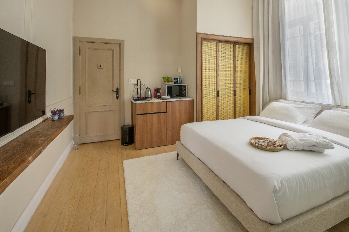 Experience Cairo from this stylish Kasr El Nile studio, perfectly located downtown, minutes from Tahrir Square, the Nile, and more. This modern space features a king-size bed, Wi-Fi, Smart TV, balcony, and a fully equipped kitchenette. Enjoy a peaceful stay with easy access to restaurants, cafes, and transport. Whether you're visiting for work or leisure, this cozy studio offers comfort, convenience, and a true taste of Cairo.
