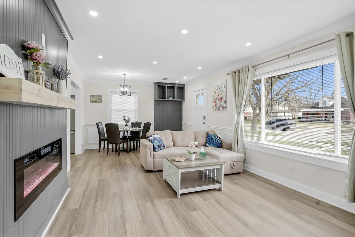 Welcome to Metro-Detroit and our centrally located ranch in the Lamphere district of Madison Heights. Our cozy, stylish home is an ideal place to stay as you explore all that metro Detroit has to offer while visiting for pleasure or for business. This is a 3 bedroom with 2 full bathroom home boasting a bar, game, and entertainment area in the basement. The main floor features an elegant living area with 3 bedrooms, 1 bath, a kitchen, and a dining area.