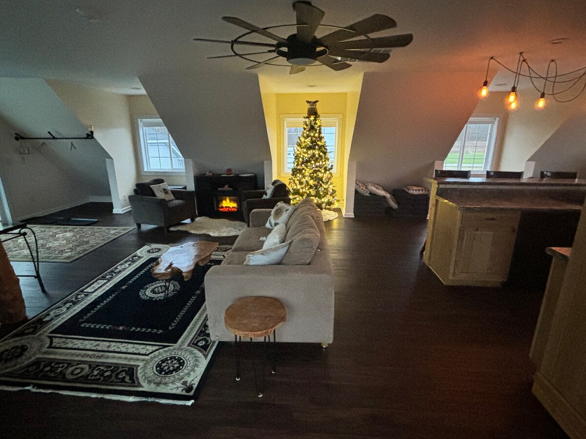 Stay at the 3000 sq ft modern barn bed & breakfast with formal gardens and a swimming pond. You'll have total, private access to the barn. Cook in the equipped kitchen or out on the bbq. Have a picnic at the gazebo or go for a walk in the garden. Play lawn games, make s'mores around the firepit or stay in and watch a movie. Right in the middle of and less then 30 minutes away from Perrysburg, Findlay, Fremont and Tiffin.