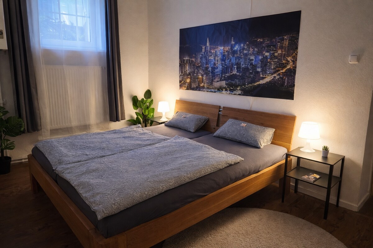 This 2 Bedroom Appartement is located in walking distance between the train station, city center and exhibition center. This charming Appartement in a historic house was newly renovated in early 2017 with new beds, bathroom etc. Only the "old" furniture stayed "old"! You can have parking, even closed garage (Motorcycle riders welcome) on demand order breakfast and enjoy Welsin a charming and luxury way!
