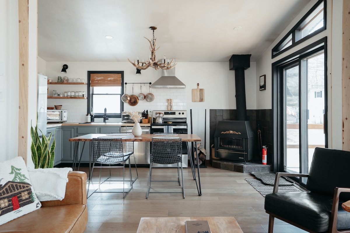 This Chalet has something for everyone for all seasons! Skiing in winter, mountain biking and golfing in the summer, stunning fall foliage and amazing hikes all year round! Enjoy the many activities available or just relax and take in the mountain views on the beautiful deck or S'mores at the fire pit. just 1 mile from Town - so close to all conveniences! Enjoy a roaring fire in the fireplace, BBQ on the porch, and our gorgeous modern kitchen with all the comforts of home. Plus High-speed WiFi!