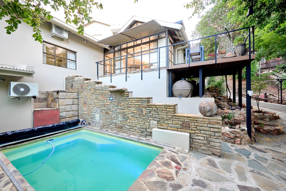 This newly renovated double-storey 4 bedroom/3.5 bathroom home with stunning views across town offers exceptional living in a tranquil, yet central setting; tree lined with vivid bird life next to a lush canyon. Well suited for families. Living Areas: Lounge | Dining | TV Room | Private Study Large kitchen with separate scullery/laundry Entertainment: large patio, swimming pool, open BBQ porch Secure parking: double garage, tandem shaded carport Alarm system + armed response AC + Water cooler