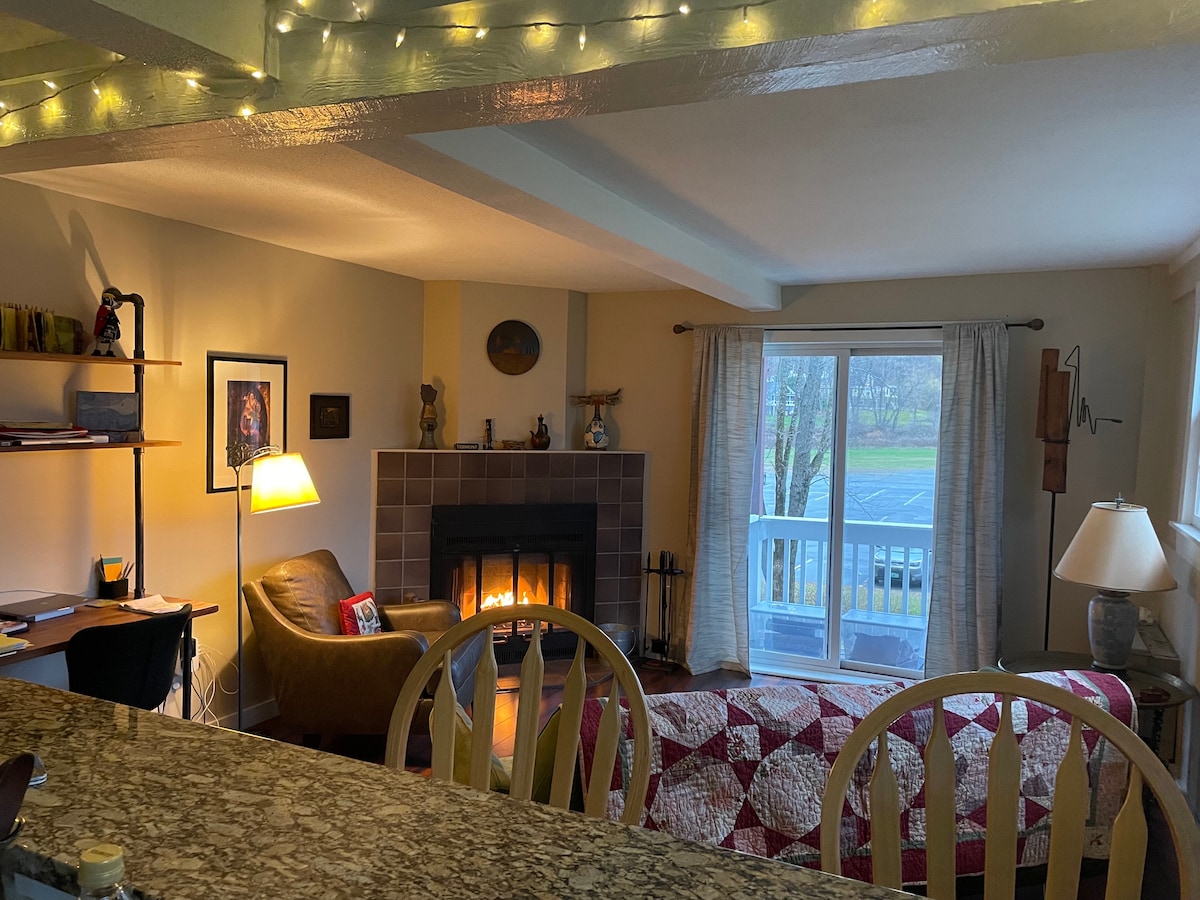 This cozy condo is exactly what a close group of 4-5 people need for a wonderful ski experience. Located centrally in the beautiful town of Ludlow this location is close to everything you could want. It sits on the bus route for Okemo Mountain, and is walkable to groceries, restaurants and bars. "Eight Oh Brew" tap house is located on the base floor of the building. This location has free onsite parking, free firewood and coin laundry machines.