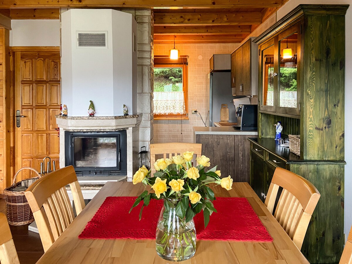 A fairytale cottage at an altitude of 850 meters (2,790 feet) above sea level, with picturesque mountain views. The cottage is 50 square meters. On the ground floor there is a living room with a fireplace, a kitchen with a dining area, and a bathroom. On the mezzanine, there is a large double bed and a sofa. There are two TVs in the cottage. The cottage is for 2 people. STARLINK internet is available at the property. Please read the House Rules. The listing is for the price of the cottage. The price list for amenities (sauna, Jacuzzi) is included in the Terms and Conditions.