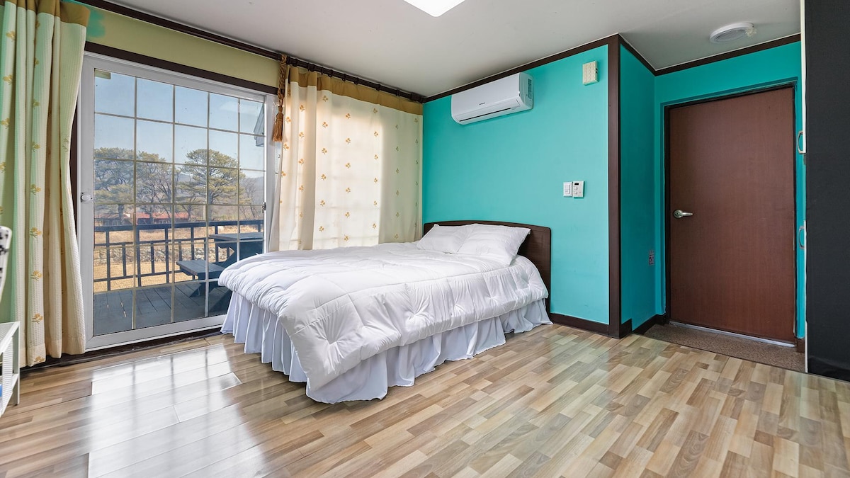 A private house with no shared space outside the yard for 2 people. There are 3 rooms (a queen + single bed room for 3 people can use one main room and a loft room with a lake view for 3 people, a second room with a second room, and an additional room on the second floor aka ‘maid room', and there are two sofa beds in the living room with a lake view, so up to a total of 10 people can use it. * The entire yard is shared with the neighboring lake house and the right star accommodation, and there is a private barbecue. You can use the small yard that includes the barbecue alone. * Since the double bed for 2 people is the default setting corresponding to the basic price, if you need to use the bed or room separately after booking for 2 or 3 people, you must apply for additional bedding in advance with a separate additional fee (additional bedding 10,000 won - room additional 20,000 won). * There is a Byeongji Valley 2-30 minutes away from the accommodation, and there is a water planet at the children's playground in Hoengseong-eup, 10 minutes away from Hoengseong-gun ^ ^