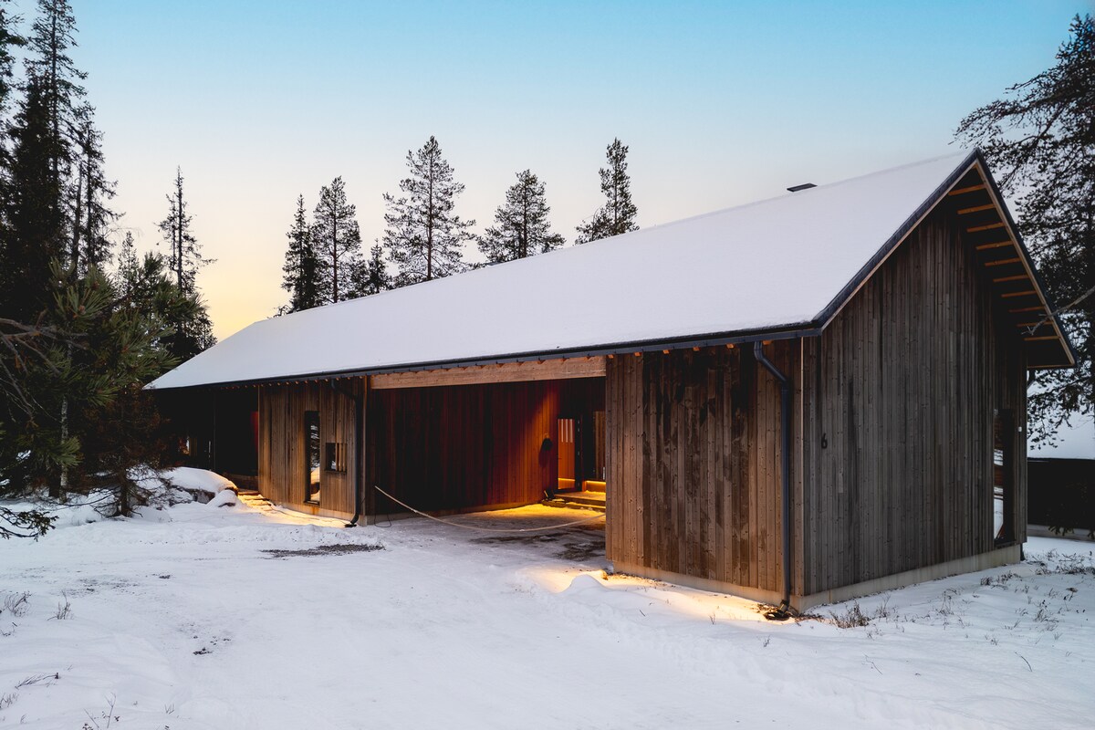The cabin provides comfortable accommodation spaces and a well-equipped kitchen where you can prepare delicious meals after long days. There are two bedrooms on the ground floor, one of which has separable beds. Upstairs there's a large bunk beds, WC and a fold-out futon sofa for an extra bed. The sauna is located in a separate outdoor building, accessed through a glazed terrace. An outdoor fireplace is also situated on the terrace, where you can enjoy even the chilliest of evenings.